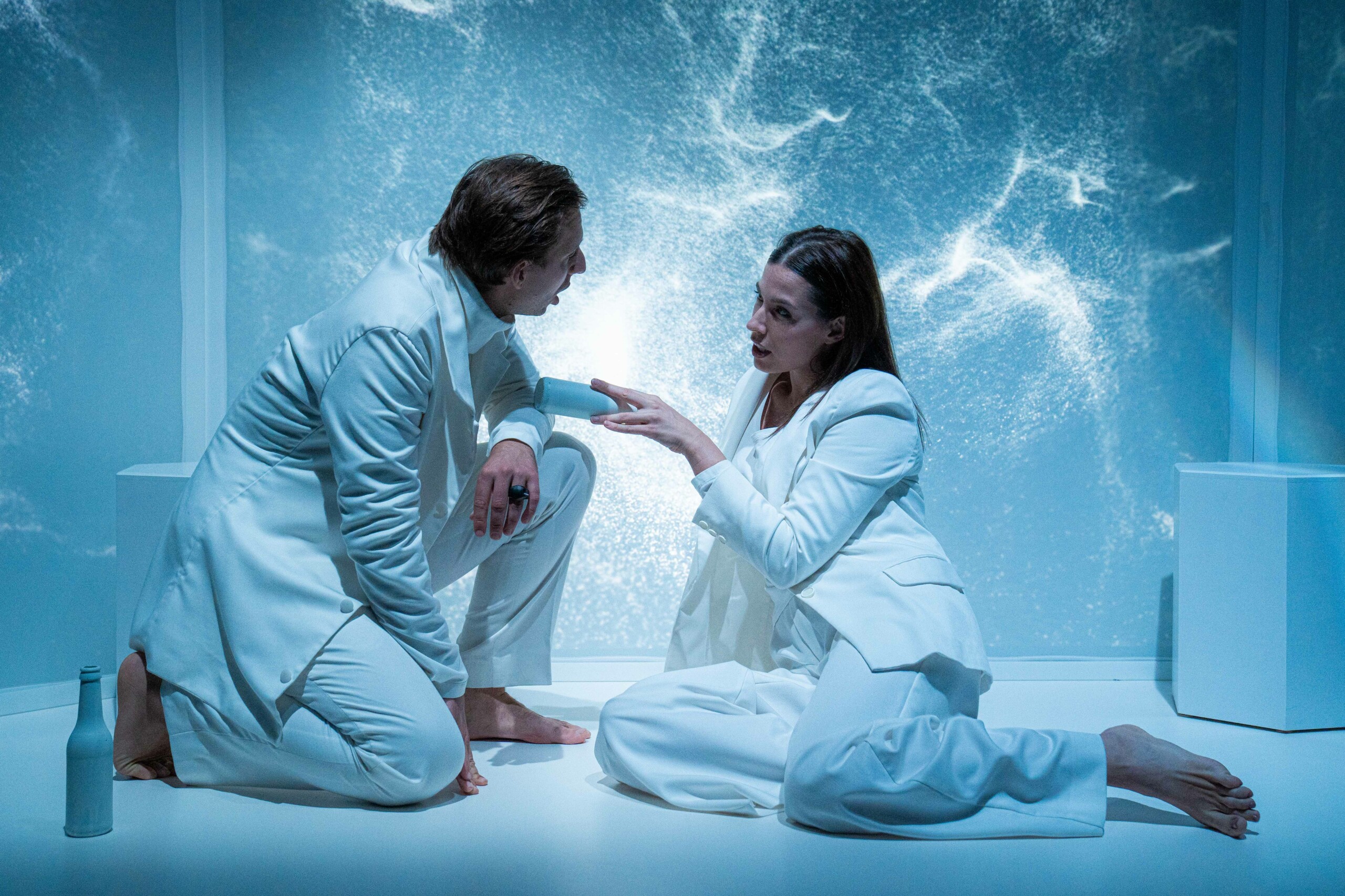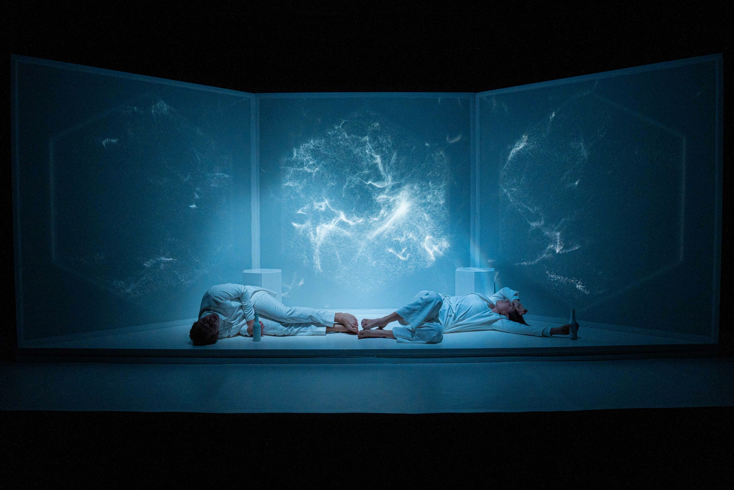 “Constellations” tells the story of a man searching for his lost beloved far beyond the limits of reality through the means of technology, in a dimension where memories and emotions create new worlds. The production is the second project realized under the Apostol Karamitev Program, launched in 2023 to encourage artistic experimentation and diversity in theatrical expression.